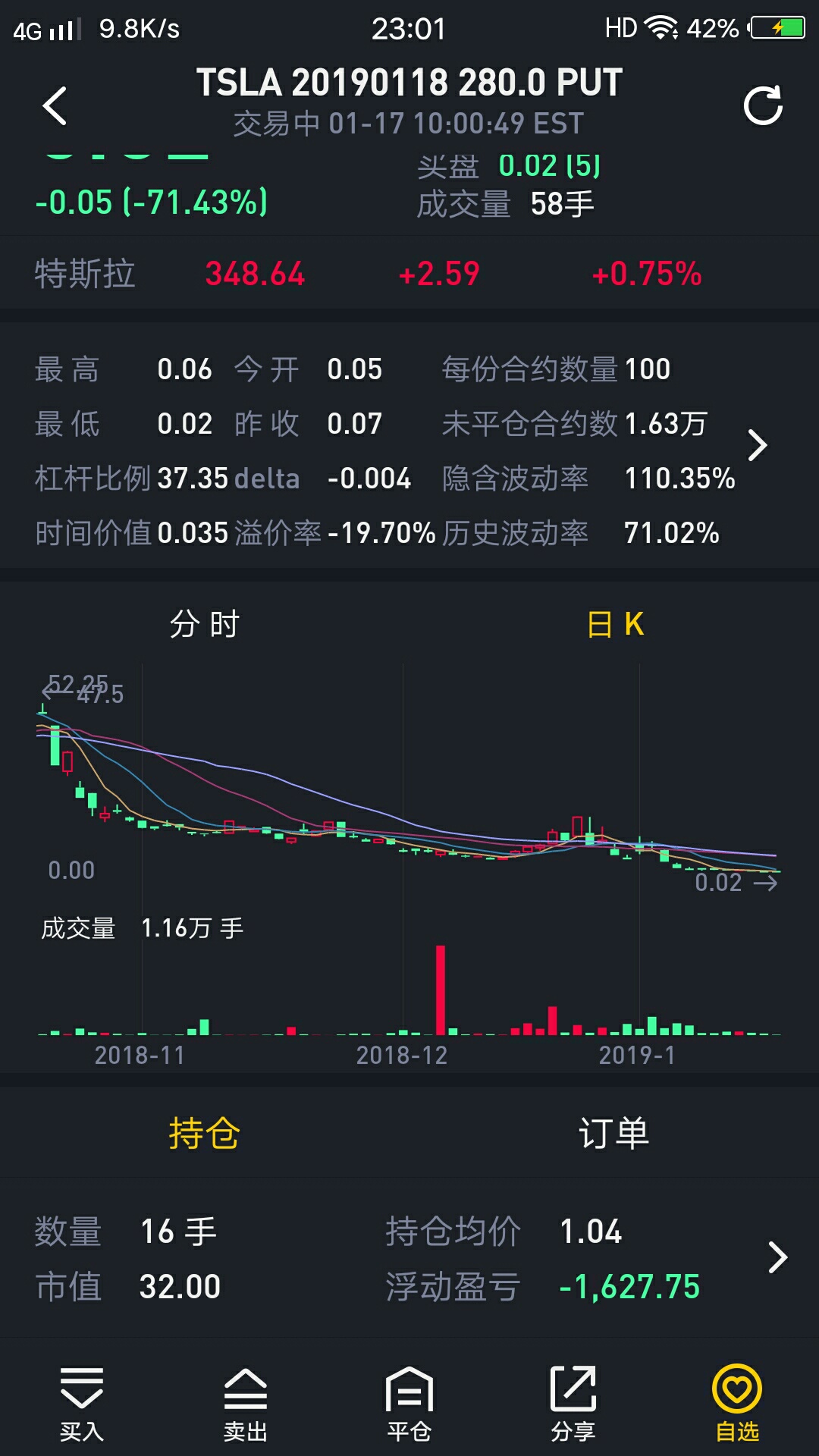 16手put。。。有一次我卖了这么多手特斯拉put,结果股价突然暴跌,强平加割肉亏了一万多刀。然后股价很快又回去了