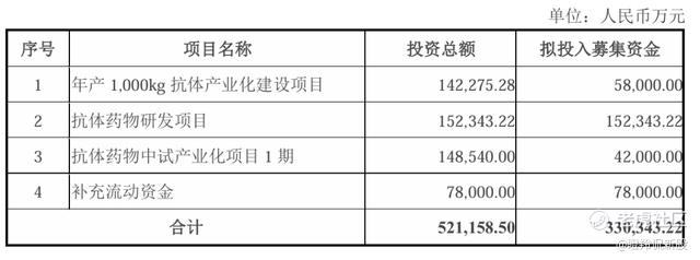 再来看看募集资金使用的情况,最初的募资计划基本上接近一半的资金给了抗体药物研发,其他分别分配给了生产基地建设和补充流动资金。