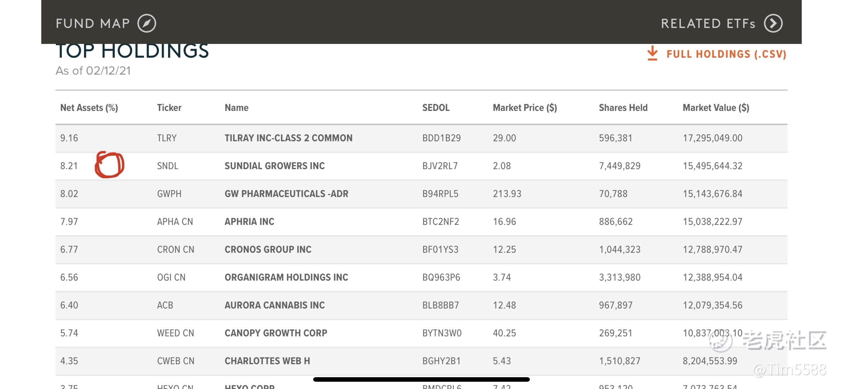 韩国的Mirae 基金,同一时间开仓多只大麻股。网站显示基金净值为2.2亿美元,今年录得亏损30%。可以按截图的网站看