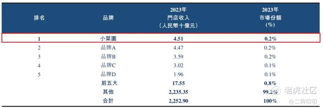 按2023年的门店收入计,“小菜园”在客单价介乎人民币50元至人民币100元的中国大众便民中式餐饮市场的所有品牌中排名第一。