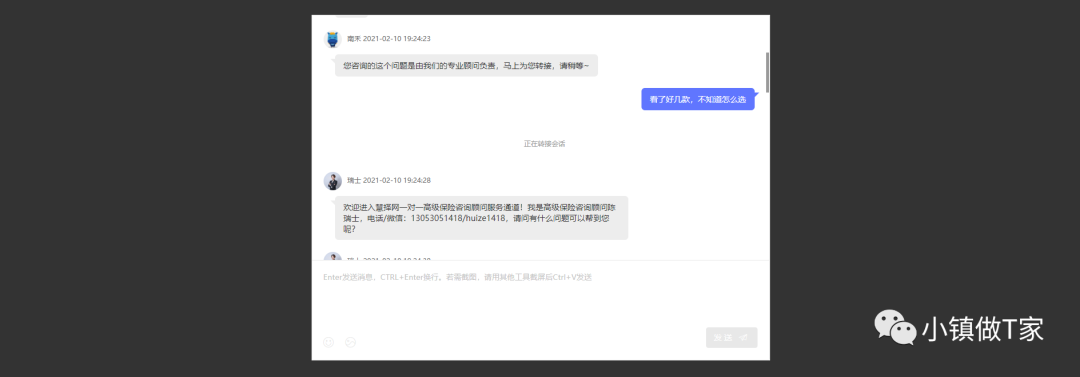 在明确了我的诉求内容后,直接转接到专业的保险顾问: