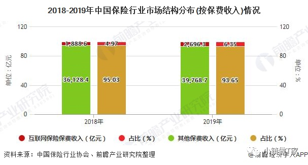 根据中国保险行业协会数据,2019年我国互联网保险保费收入达到2696.3亿元,占行业总保费的6.35%,较2018年有所增长。