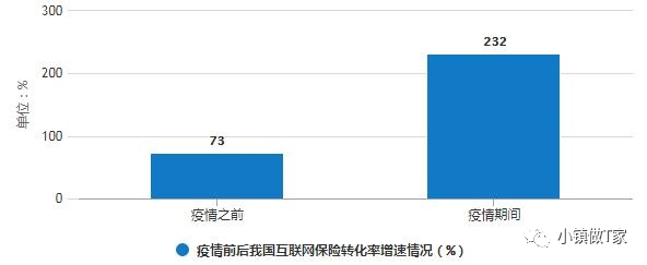 疫情的到来,让保险行业互联网化的速度加快。根据复旦大学调研显示:2020年疫情之前,互联网保险转化率是6.35%,较去年同期平均增长73%;疫情期间,互联网保险转化率为21%,较去年同期平均增长232%。相当于5个线上访客中有1个能成单。