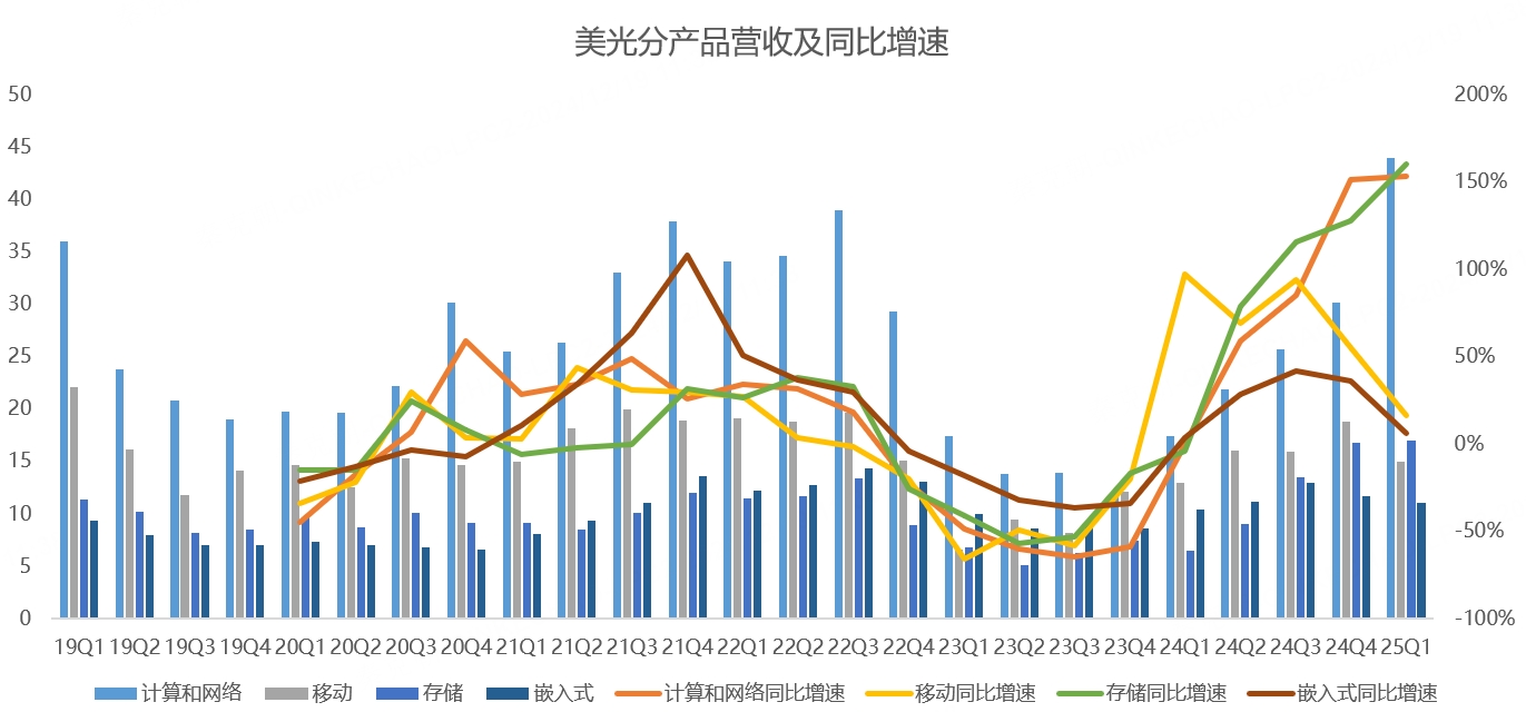 计算和网络包含了当下最火的数据中心市场,以及HBM产品,一季度数据中心收入同比增长400%,占总收入的比重达到50%,其中,HMB收入环比翻两倍!