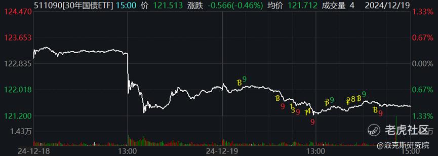 就拿这两天的30年期国债ETF来说吧,虽然利空消息出来了后,跳水幅度超过了1.5%,但很快就触底反弹了,尾盘跌幅收窄。今天同样是“V”型走势,说明多头们还在坚持。