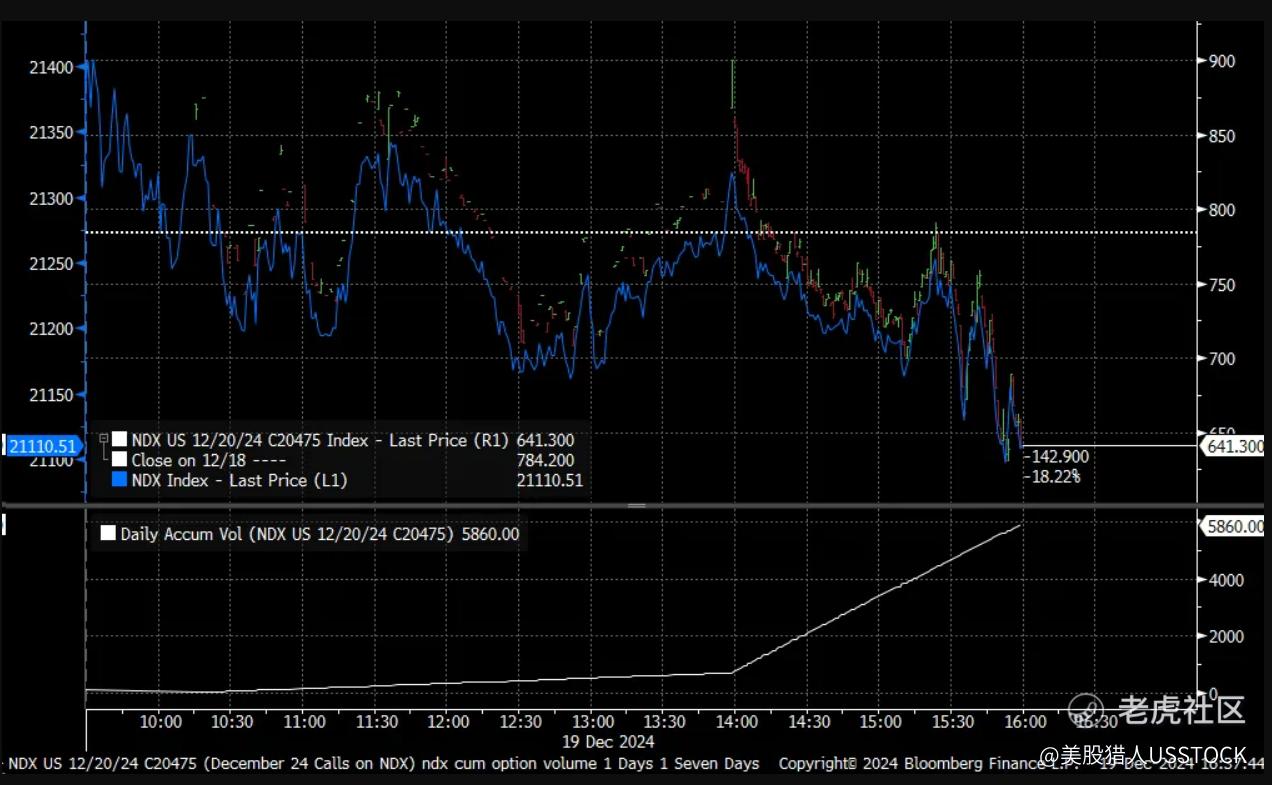 昨天是 OpEx 的前一天。通常,在 OpEx 的前一天,QYLD ETF 会回购上个月在纳斯达克指数上卖出的备兑看涨期权。这些流动通常在下午 2 点左右开始。尽管当天早些时候市场走高,但收盘时市场却下跌,即使 QYLD ETF 以 20,475 执行价回购了 12 月 21 日的期权。