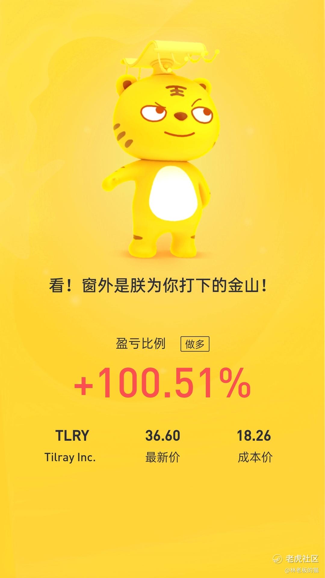 $Tilray Inc.(TLRY)$2/4 GME失利后加仓了大麻,盈利50左右发了一个帖子,有兴趣可以往回翻一翻。今天是2/9,100个点盈利。我知道大麻肯定会涨,不过从没有想到会这么暴力。没啥说的,过个好年,大家牛年行大运吧。