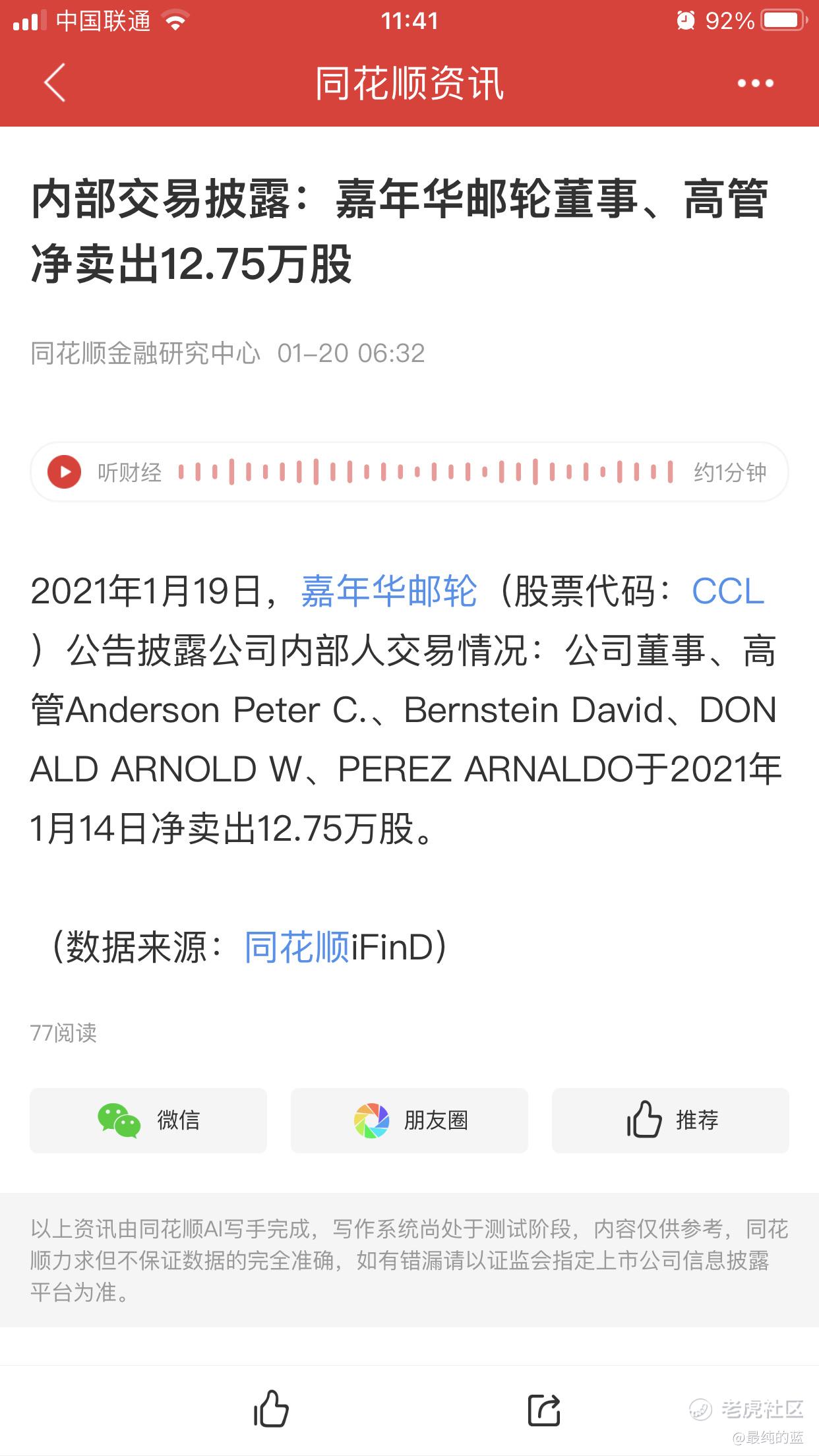 {"i18n":{"language":"zh_CN"},"detailType":1,"isChannel":false,"data":{"magic":2,"id":384373204,"tweetId":"384373204","gmtCreate":1613619955808,"gmtModify":1613619955808,"author":{"id":3517663820138370,"idStr":"3517663820138370","authorId":3517663820138370,"authorIdStr":"3517663820138370","name":"最纯的蓝","avatar":"https://static.tigerbbs.com/0244b4c152139e2e49d607b9536c2394","vip":1,"userType":1,"introduction":"","boolIsFan":false,"boolIsHead":false,"crmLevel":8,"crmLevelSwitch":0,"individualDisplayBadges":[],"fanSize":93,"starInvestorFlag":false},"themes":[],"images":[{"img":"https://static.tigerbbs.com/46287cb0b20dbe744b11cb85e695846f","width":"1242","height":"2208"},{"img":"https://static.tigerbbs.com/64da5f85acd4523ae40b0a06840cff7a","width":"1242","height":"2208"}],"coverImages":[{"img":"https://static.tigerbbs.com/46287cb0b20dbe744b11cb85e695846f","width":"1242","height":"2208"}],"extraTitle":"","html":"<html><head></head><body><p><a href=\"https://laohu8.com/S/CCL\">$嘉年华邮轮(CCL)$</a>自家大股东最近一直在逢高减持意味着什么? </p><p>挪威复航延迟到6月,CCL也必然是一样...邮轮复苏之路比想象中艰辛...</p><img src=\"https://static.tigerbbs.com/46287cb0b20dbe744b11cb85e695846f\" tg-width=\"1242\" tg-height=\"2208\"><img src=\"https://static.tigerbbs.com/64da5f85acd4523ae40b0a06840cff7a\" tg-width=\"1242\" tg-height=\"2208\"></body></html>","htmlText":"<html><head></head><body><p><a href=\"https://laohu8.com/S/CCL\">$嘉年华邮轮(CCL)$</a>自家大股东最近一直在逢高减持意味着什么? </p><p>挪威复航延迟到6月,CCL也必然是一样...邮轮复苏之路比想象中艰辛...</p><img src=\"https://static.tigerbbs.com/46287cb0b20dbe744b11cb85e695846f\" tg-width=\"1242\" tg-height=\"2208\"><img src=\"https://static.tigerbbs.com/64da5f85acd4523ae40b0a06840cff7a\" tg-width=\"1242\" tg-height=\"2208\"></body></html>","text":"$嘉年华邮轮(CCL)$自家大股东最近一直在逢高减持意味着什么? 挪威复航延迟到6月,CCL也必然是一样...邮轮复苏之路比想象中艰辛...","highlighted":1,"essential":1,"paper":1,"likeSize":3,"commentSize":13,"repostSize":0,"favoriteSize":0,"link":"https://laohu8.com/post/384373204","repostId":0,"isVote":1,"tweetType":1,"viewCount":5395,"commentLimit":10,"likeStatus":false,"favoriteStatus":false,"reportStatus":false,"symbols":["CCL"],"verified":2,"subType":0,"readableState":1,"langContent":"CN","currentLanguage":"CN","warmUpFlag":false,"orderFlag":false,"shareable":true,"causeOfNotShareable":"","featuresForAnalytics":[],"commentAndTweetFlag":false,"andRepostAutoSelectedFlag":false,"upFlag":false,"length":119,"xxTargetLangEnum":"ZH_CN"},"commentList":[{"id":3607791,"commentId":"3607791","gmtCreate":1613712775995,"gmtModify":1613712775995,"authorId":3494075730071517,"author":{"id":3494075730071517,"idStr":"3494075730071517","authorId":3494075730071517,"name":"对没错文源就是我","avatar":"https://static.tigerbbs.com/10e4211555ad9af84a27feb2651c1b3a","vip":1,"crmLevel":1,"crmLevelSwitch":0,"individualDisplayBadges":[]},"repliedAuthorId":0,"objectId":384373204,"objectIdStr":"384373204","type":1,"supId":0,"supIdStr":"0","prevId":0,"prevIdStr":"0","content":"笑死我了你真的,前几天你卖了发帖就有人说你要踩空,你确实踩空了 [捂脸]","text":"笑死我了你真的,前几天你卖了发帖就有人说你要踩空,你确实踩空了 [捂脸]","html":"笑死我了你真的,前几天你卖了发帖就有人说你要踩空,你确实踩空了 [捂脸]","likeSize":1,"commentSize":4,"subComments":[{"id":3624423,"commentId":"3624423","gmtCreate":1613895133544,"gmtModify":1613895133544,"authorId":3517663820138370,"author":{"id":3517663820138370,"idStr":"3517663820138370","authorId":3517663820138370,"name":"最纯的蓝","avatar":"https://static.tigerbbs.com/0244b4c152139e2e49d607b9536c2394","vip":1,"crmLevel":8,"crmLevelSwitch":0,"individualDisplayBadges":[]},"repliedAuthorId":3494075730071517,"repliedAuthor":{"id":3494075730071517,"idStr":"3494075730071517","authorId":3494075730071517,"name":"对没错文源就是我","avatar":"https://static.tigerbbs.com/10e4211555ad9af84a27feb2651c1b3a","vip":1,"crmLevel":1,"crmLevelSwitch":0,"individualDisplayBadges":[]},"objectId":384373204,"objectIdStr":"384373204","type":1,"supId":3607791,"supIdStr":"3607791","prevId":3617287,"prevIdStr":"3617287","content":"你眼里只有CCL?前天抄底Palantir,昨天赚了17%...我可以说你踏空了Palantir?","text":"你眼里只有CCL?前天抄底Palantir,昨天赚了17%...我可以说你踏空了Palantir?","html":"你眼里只有CCL?前天抄底Palantir,昨天赚了17%...我可以说你踏空了Palantir?","disclaimerType":0},{"id":3624344,"commentId":"3624344","gmtCreate":1613893475801,"gmtModify":1613893475801,"authorId":3517663820138370,"author":{"id":3517663820138370,"idStr":"3517663820138370","authorId":3517663820138370,"name":"最纯的蓝","avatar":"https://static.tigerbbs.com/0244b4c152139e2e49d607b9536c2394","vip":1,"crmLevel":8,"crmLevelSwitch":0,"individualDisplayBadges":[]},"repliedAuthorId":3494075730071517,"repliedAuthor":{"id":3494075730071517,"idStr":"3494075730071517","authorId":3494075730071517,"name":"对没错文源就是我","avatar":"https://static.tigerbbs.com/10e4211555ad9af84a27feb2651c1b3a","vip":1,"crmLevel":1,"crmLevelSwitch":0,"individualDisplayBadges":[]},"objectId":384373204,"objectIdStr":"384373204","type":1,"supId":3607791,"supIdStr":"3607791","prevId":3617287,"prevIdStr":"3617287","content":"24块 12月份就已经到了","text":"24块 12月份就已经到了","html":"24块 12月份就已经到了","disclaimerType":0},{"id":3617287,"commentId":"3617287","gmtCreate":1613785227328,"gmtModify":1613785227328,"authorId":3494075730071517,"author":{"id":3494075730071517,"idStr":"3494075730071517","authorId":3494075730071517,"name":"对没错文源就是我","avatar":"https://static.tigerbbs.com/10e4211555ad9af84a27feb2651c1b3a","vip":1,"crmLevel":1,