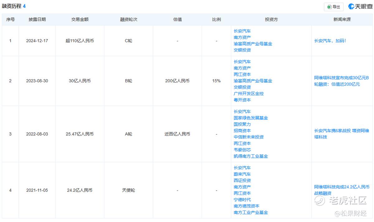12月17日,由长安攒局,华为、宁德时代共同参与打造的阿维塔科技成功完成超110亿元C轮融资,融资规模超过了过去三轮的总和,并宣布拟于2026年IPO上市。
