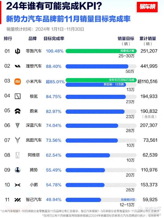 据公开数据,在销量以及完成度等方面,都位列同期国内造车新势力品牌第八。