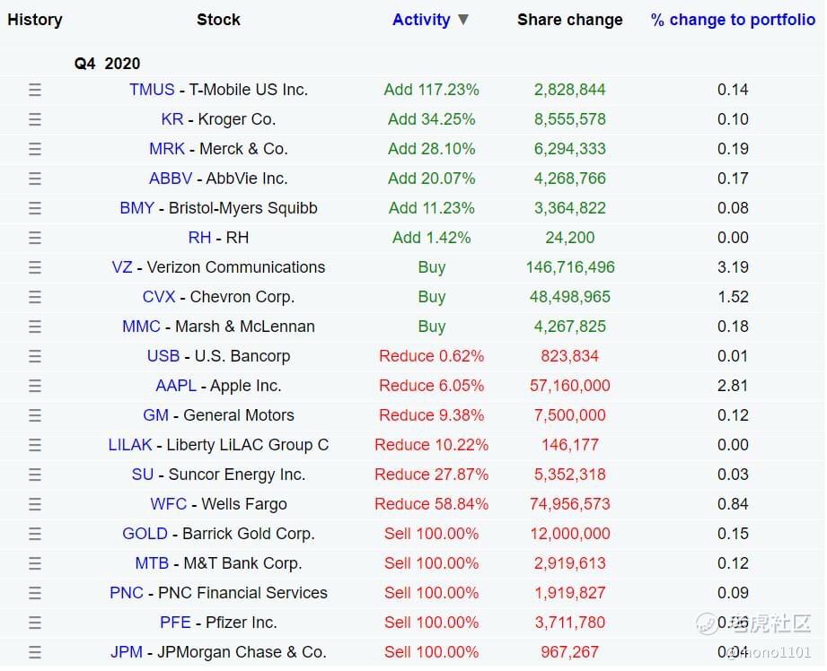 出清巴里克黄金、M&T银行、PNC金融、摩根大通、辉瑞