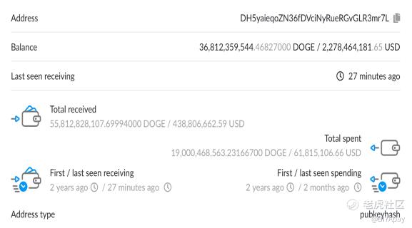 币安创办人赵长鹏于在推特上提及,狗狗币的最大地址当时持有368亿狗狗币,等于28.7%流通量,价值约22.78亿美元。