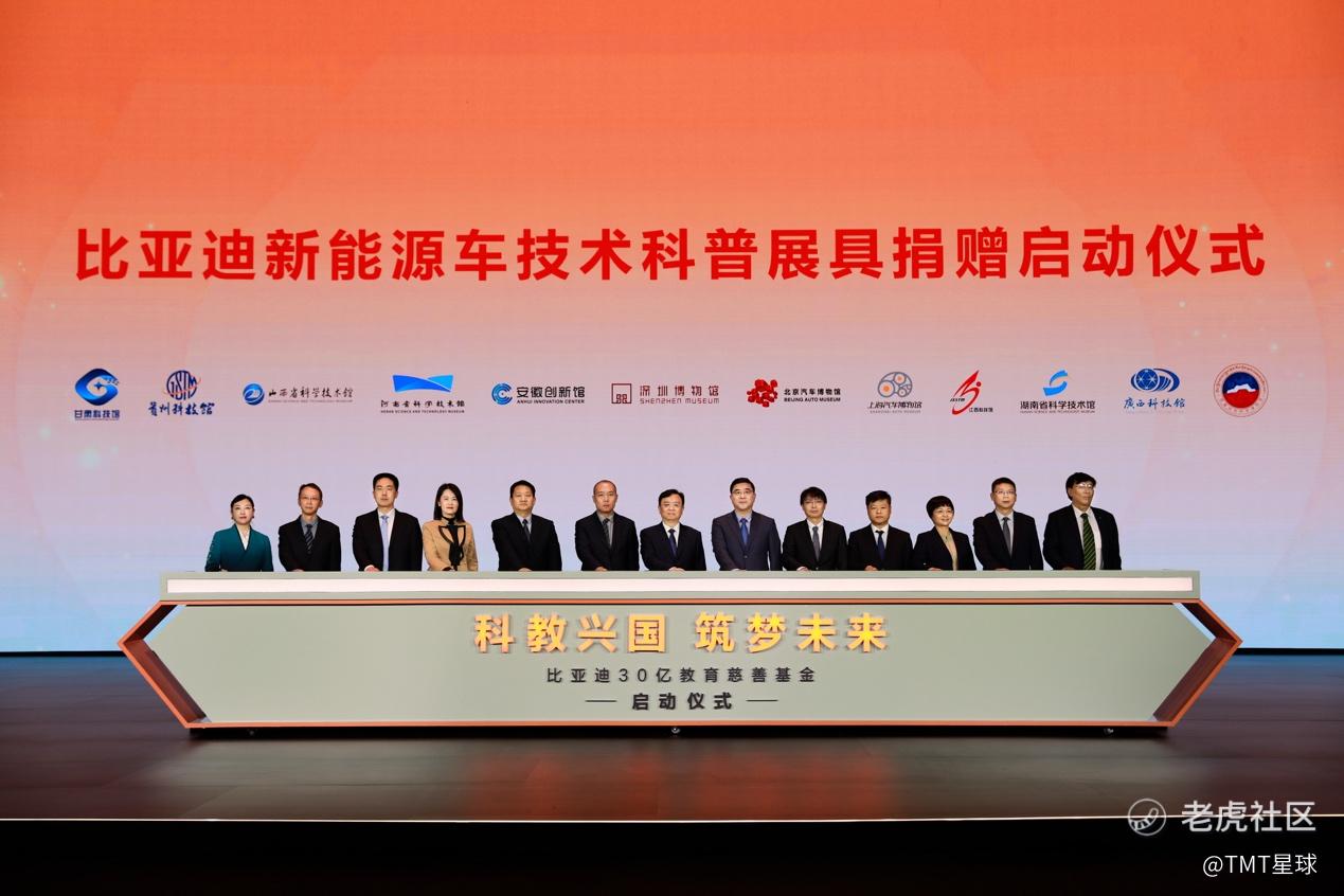 12月30日,比亚迪在深圳总部举行了30亿教育慈善基金启动仪式,比亚迪股份有限公司董事长兼总裁王传福与来自全国的35所高校代表及28所科技馆、博物馆代表共同启动比亚迪30亿教育慈善基金捐赠,推动中国科教进步。