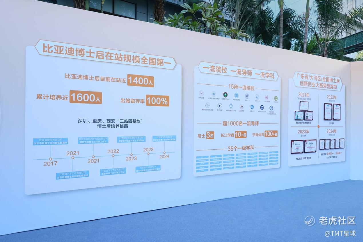 2017年,比亚迪设立博士后创新实践基地,开启博士后人才培养,将“教育接力”推进新篇章。在近7年内,比亚迪逐步形成了深圳、重庆、西安“三站四基地”的博士后培养格局,联合全国15所一流院校、35个一级学科,邀请包括3名院士、10多名长江学者在内的超1000名一流导师,累计培养了将近1600名博士后。目前比亚迪博士后在站人数近1400人,在站规模全国第一,出站留存率高达100%。这为比亚迪攀登新能源技术高峰提供了强大的人才储备。