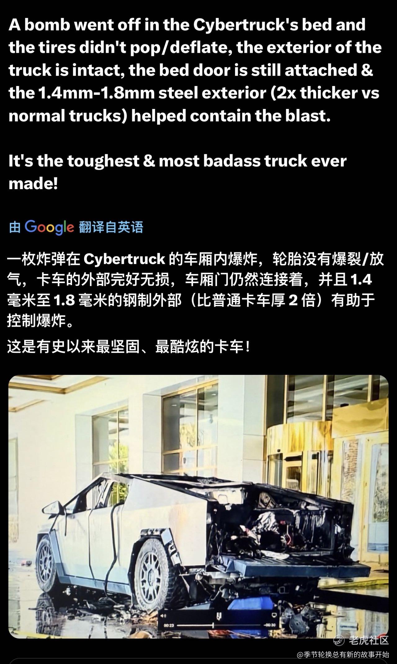 正如马斯克说的罪犯选错了恐怖袭击车辆,Cybertruck 控制住了爆炸💥范围!