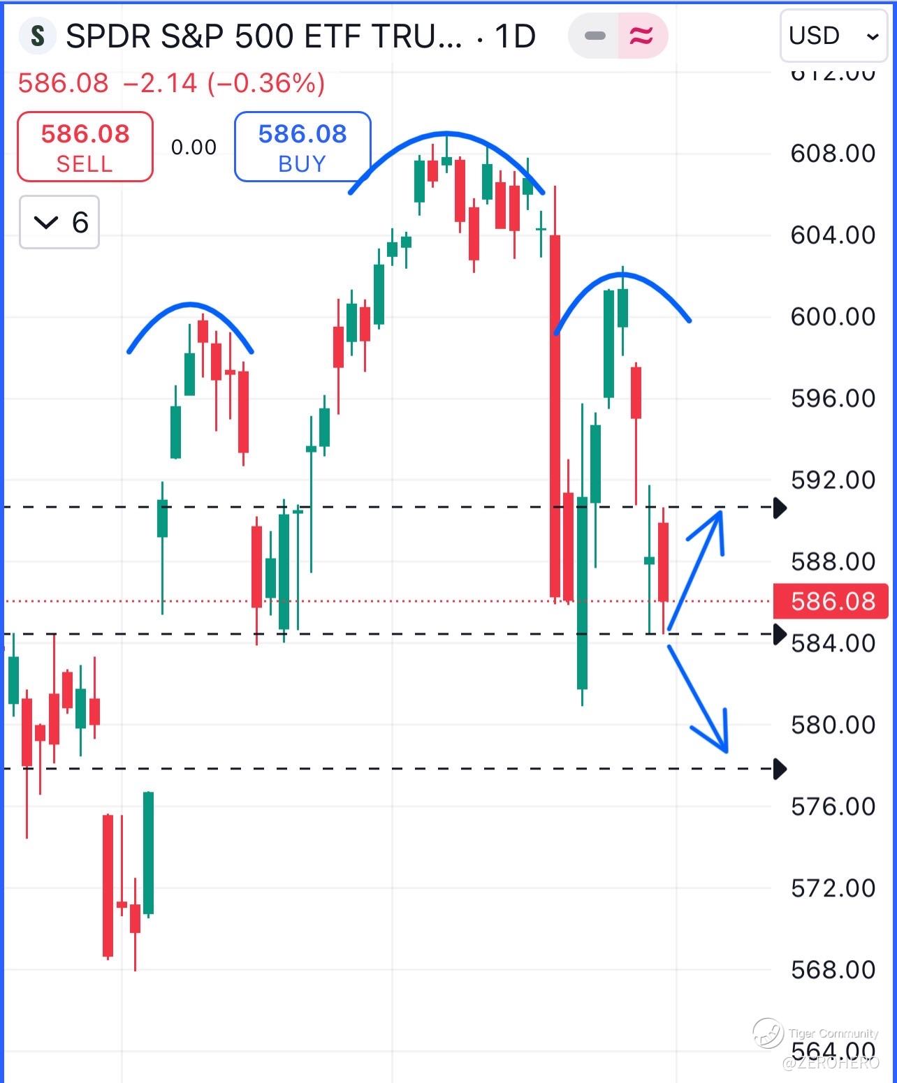 ⚠️ 585 remains a strong support for SPY. If it bounces, price needs to break above 603 to invalidate this H&S pattern. Breaking below the neckline is good to short towards 580, 578, 574.5 this week. For more insights, visit https://discord.gg/gmQs9DkA for daily updates to ride the market 🤑