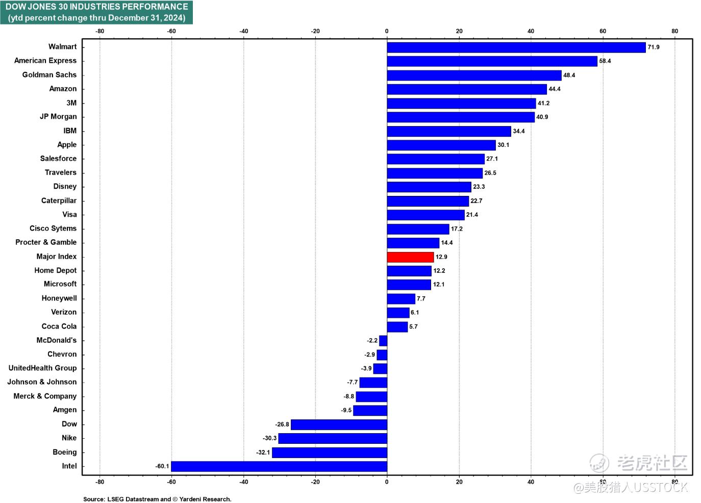 最后,如果 2024 年道琼斯狗股在 2025 年仍然如此,从而拖累该指数的相对表现,我们不应该感到惊讶(图表)。