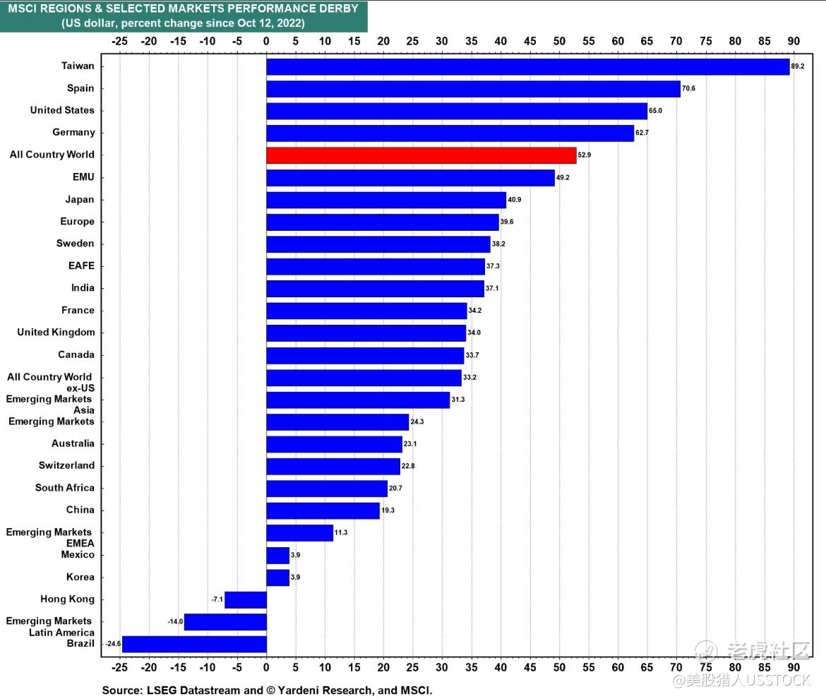 自 2022 年 10 月 12 日以来的牛市范围很广,许多股市指数上涨超过 25%(图表)。由于少数几只大盘股表现优异,牛市范围才显得狭窄。