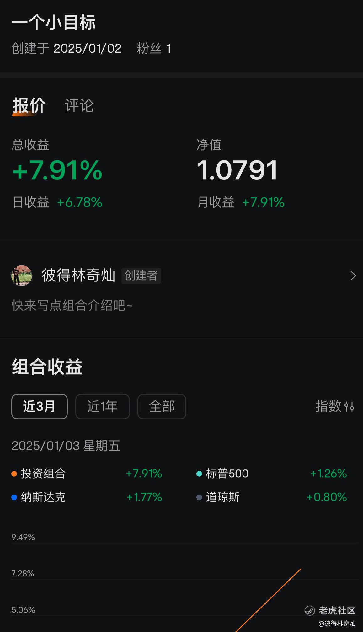 从整体来看,这个投资组合中没有出现亏损的股票,且整体股票的收益都较为可观。现金占比27.76%提供了一定的资金流动性和安全性,而美股部分由于各股票的良好表现带来了整体的盈利。不过,需要注意的是,市场是不断变化的,当前的高收益并不一定能持续,虎友们需要密切关注各股票所属行业的发展趋势,以及宏观经济环境的变化,以便及时调整投资策略。