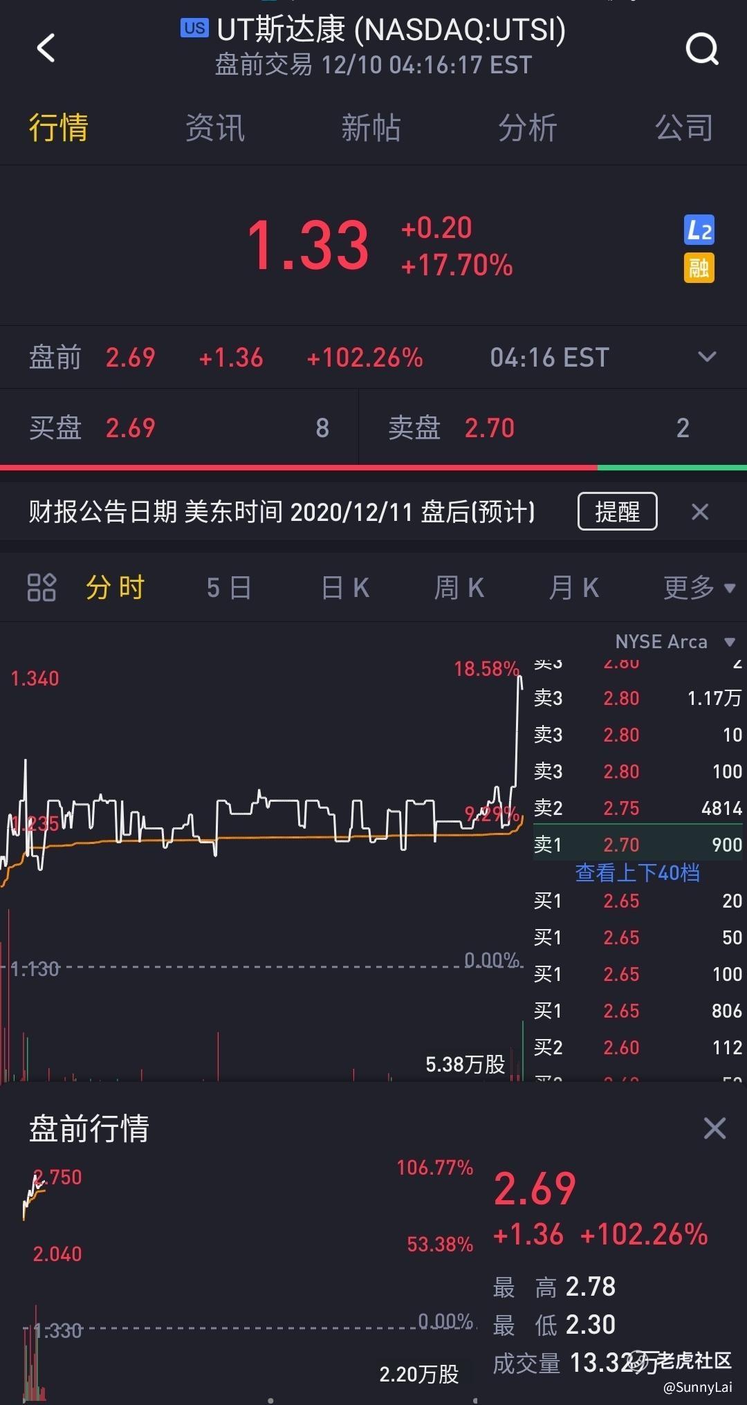 昨天盘后这货飙升,就决定今天盘前30分钟内峰值空一下。刚才设2.70空到了,如果开盘前能回落到2.00就赎回,25%收益应该可以了。