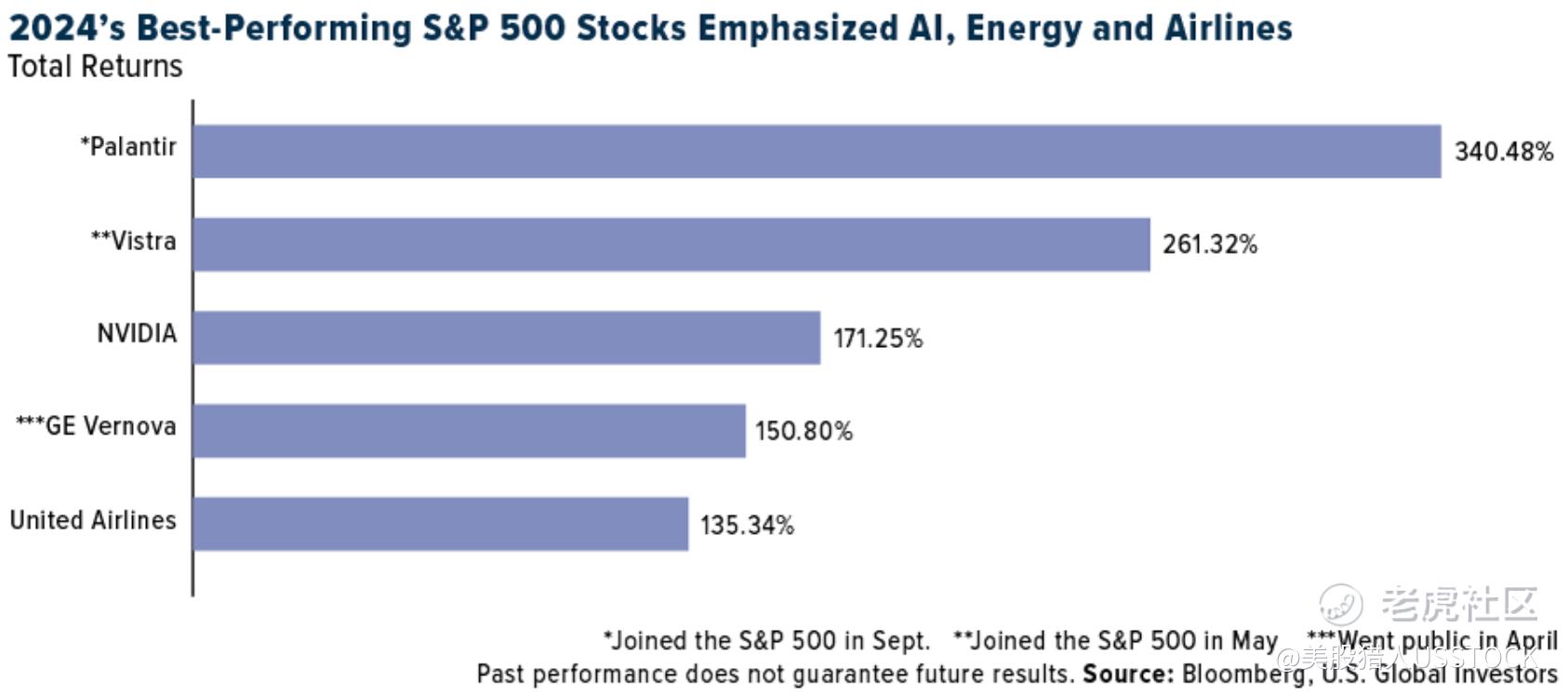 2024 年,人工智能占据了新闻头条和股市,推动 Palantir 和 NVIDIA 等公司实现三位数增长。专注于数据分析和人工智能平台的 Palantir 股价飙升 340%,成为 2024 年表现最好的标准普尔 500 指数股票。