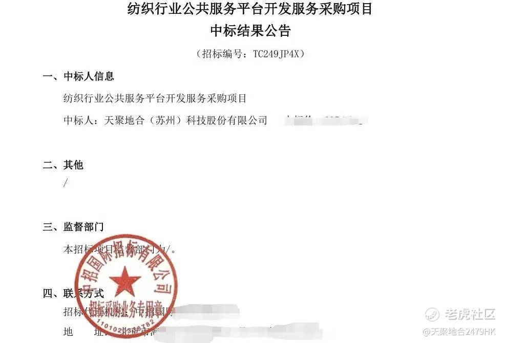 近期, $天聚地合(02479)$ (苏州)科技股份有限公司(2479.HK)中标江苏省纺织行业公共服务平台开发服务项目。通过AI技术与数据处理深度融合,多维度激活数据价值,助力纺织行业高质量发展。