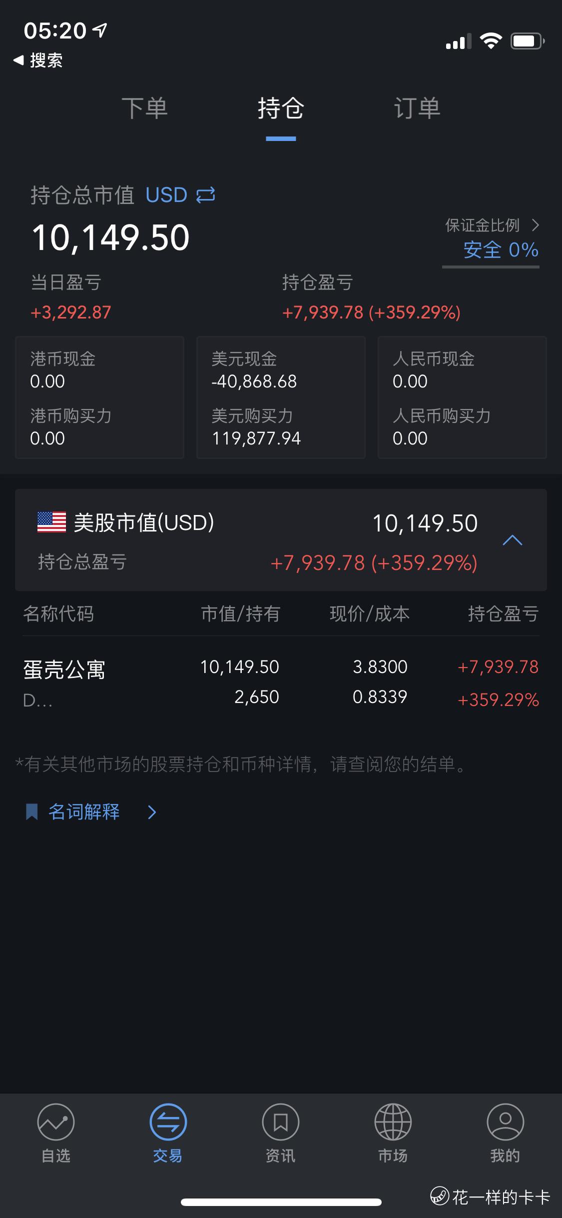10多万美金满仓蛋壳,涨起来5-8个点就跑 跑个两次满仓卖剩下2000多股,不就8毛多成本显示了咯