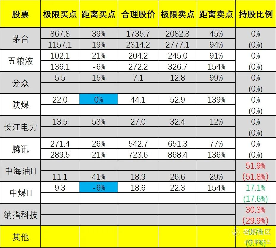 4、表格内相关数字,会随股价波动和我个人对公司的评估,不定期调整,请勿作为长期参考,切记巴菲特都经常判断失误,更何况我等凡人。