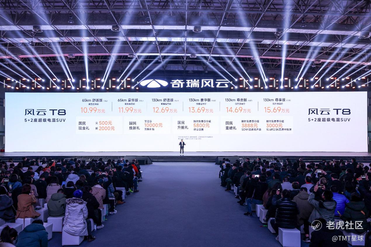 1月11日,奇瑞风云T8全球预售发布会在安徽芜湖宜居国际博览中心正式举行。作为奇瑞倾力打造的5+2座超级电混SUV,风云T8搭载C-DM5.0混动系统,不仅拥有更长、更强、更实用、更安全的四大核心优势,更以越级的产品价值,成为了国民用车的更优选。