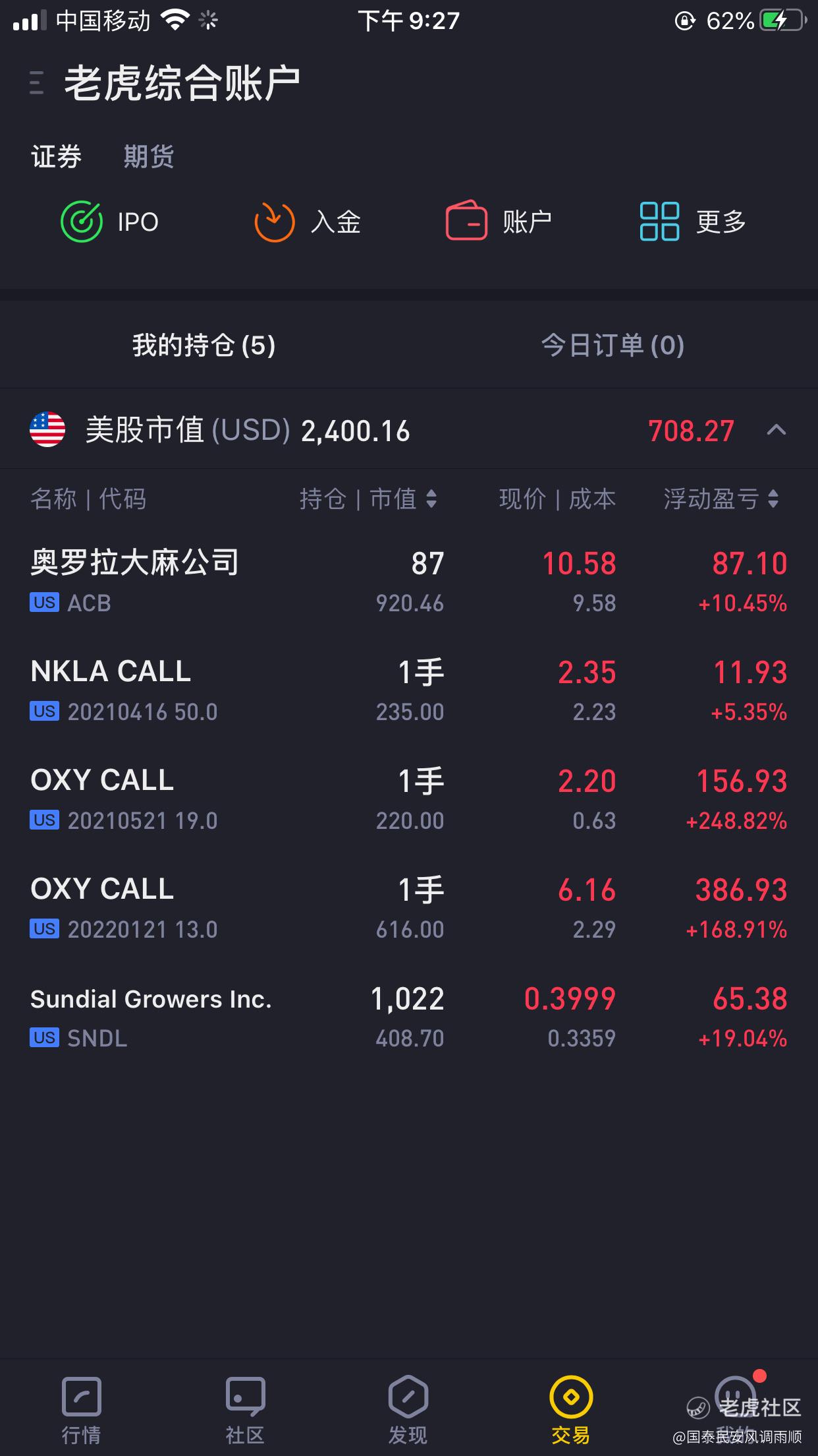 之前7月份左右1.5万美金全仓石油期权!亏的只有178美金!哎、怪自己赌性太大!但是这才是自己啊、富贵险中求、我还要买大麻和石油期权!$奥罗拉大麻公司(ACB)$$西方石油(OXY)$$埃克森美孚(XOM)$