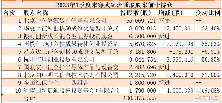 不过,公司研究室也注意到,整体而言,寒武纪的股价当时还在低位,大批基金在2023年2季度继续涌入,数据显示,6月末有576只基金持有8494.93万股,占流通股本比例33.81%。这时候,这只股票已然成为基金集体重仓股。