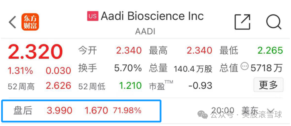 受此消息影响,Aadi Bioscience股价在盘后大涨70%+。