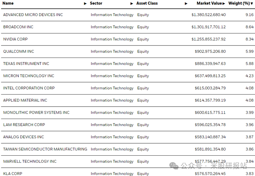 下图:soxx半导体 ETF 成分股