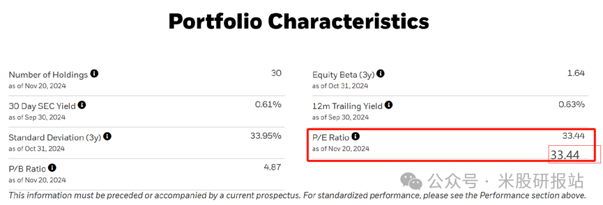 下图:SOXX的市盈率33.4倍