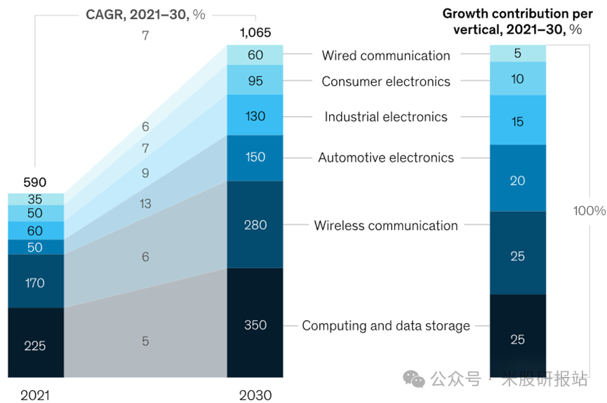 下图:全球半导体市场垂直价值(麦肯锡)