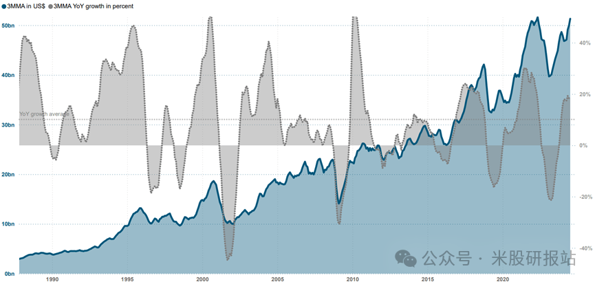下图:半导体行业月度收入历史记录(世界半导体贸易统计)