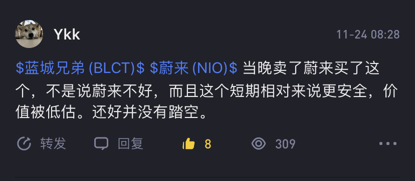 {"i18n":{"language":"zh_CN"},"detailType":1,"isChannel":false,"data":{"magic":2,"id":393336823,"tweetId":"393336823","gmtCreate":1606230204162,"gmtModify":1703841927323,"author":{"id":3568545009964137,"idStr":"3568545009964137","authorId":3568545009964137,"authorIdStr":"3568545009964137","name":"Ykk","avatar":"https://static.tigerbbs.com/0cb0c315dd5bab65b4f934fc08af49f1","vip":1,"userType":1,"introduction":"","boolIsFan":false,"boolIsHead":false,"crmLevel":1,"crmLevelSwitch":0,"individualDisplayBadges":[],"fanSize":4,"starInvestorFlag":false},"themes":[],"images":[{"img":"https://static.tigerbbs.com/b13480510c22811b05b616defb297db3","width":"828","height":"362"}],"coverImages":[{"img":"https://static.tigerbbs.com/b13480510c22811b05b616defb297db3","width":"828","height":"362"}],"extraTitle":"","html":"<html><head></head><body><p><a href=\"https://laohu8.com/S/BLCT\">$蓝城兄弟(BLCT)$</a><a href=\"https://laohu8.com/S/NIO\">$蔚来(NIO)$</a>昨晚下车成功又成功上车。。。没有踩空。。等电动车调整一波再上车</p><img src=\"https://static.tigerbbs.com/b13480510c22811b05b616defb297db3\" tg-width=\"828\" tg-height=\"362\"></body></html>","htmlText":"<html><head></head><body><p><a href=\"https://laohu8.com/S/BLCT\">$蓝城兄弟(BLCT)$</a><a href=\"https://laohu8.com/S/NIO\">$蔚来(NIO)$</a>昨晚下车成功又成功上车。。。没有踩空。。等电动车调整一波再上车</p><img src=\"https://static.tigerbbs.com/b13480510c22811b05b616defb297db3\" tg-width=\"828\" tg-height=\"362\"></body></html>","text":"$蓝城兄弟(BLCT)$$蔚来(NIO)$昨晚下车成功又成功上车。。。没有踩空。。等电动车调整一波再上车","highlighted":1,"essential":1,"paper":1,"likeSize":9,"commentSize":1,"repostSize":0,"favoriteSize":0,"link":"https://laohu8.com/post/393336823","repostId":0,"isVote":1,"tweetType":1,"viewCount":1332,"commentLimit":10,"likeStatus":false,"favoriteStatus":false,"reportStatus":false,"symbols":["BLCT","NIO"],"verified":2,"subType":0,"readableState":1,"langContent":"CN","currentLanguage":"CN","warmUpFlag":false,"orderFlag":false,"shareable":true,"causeOfNotShareable":"","featuresForAnalytics":[],"commentAndTweetFlag":false,"andRepostAutoSelectedFlag":false,"upFlag":false,"length":84,"xxTargetLangEnum":"ZH_CN"},"commentList":[{"id":3089096,"commentId":"3089096","gmtCreate":1606230432409,"gmtModify":1606232009386,"authorId":3536014127476349,"author":{"id":3536014127476349,"idStr":"3536014127476349","authorId":3536014127476349,"name":"別掏我兜儿","avatar":"https://static.tigerbbs.com/701c955660536c893f603d3e4c6d6e3c","vip":1,"crmLevel":3,"crmLevelSwitch":0,"individualDisplayBadges":[]},"repliedAuthorId":0,"objectId":393336823,"objectIdStr":"393336823","type":1,"supId":0,"supIdStr":"0","prevId":0,"prevIdStr":"0","content":"牛逼神操作","text":"牛逼神操作","html":"牛逼神操作","likeSize":0,"commentSize":0,"subComments":[],"verified":10,"allocateAmount":0,"commentType":"valid","coins":0,"score":0,"disclaimerType":0}],"isCommentEnd":false,"isTiger":false,"isWeiXinMini":false,"url":"/m/post/393336823"}
