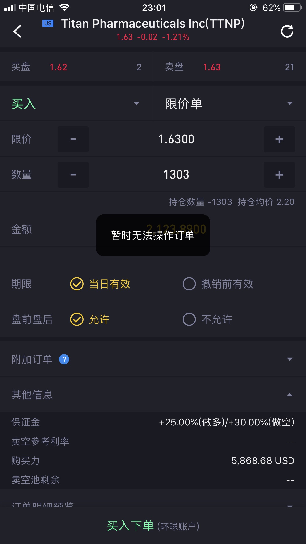 $Titan Pharmaceuticals Inc(TTNP)$你们能买卖不,我买卖提前我交易正在升级中。。。不能盘前交易!