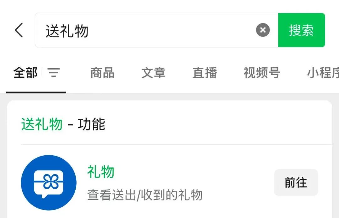 1.新增“送礼物”入口。用户在微信里搜索“送礼物”关键词,即可直接进入“礼物”频道,继续点击礼物频道的“前往”功能,即可查看“送出的”和“收到的”礼物,下方还会显示“大家都在送”,此处可以看到“X个朋友送过”、“朋友送过X次”,这一点跟微信公众号、视频号以及看一看功能很像,即有多少个好友对该内容进行过点赞、再看等,社交关系再一次被携带在商品页面中。
