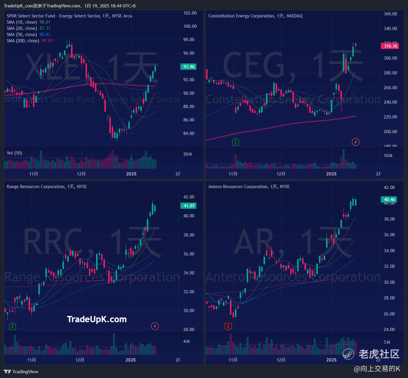 从这些高科技公司的表现来看,与我1月11日分析的观点一致:在通胀预期或市场担忧情绪下,超高估值的板块(如高科技、AI、航空等)将不再受资金青睐。反观资源和能源类板块(如AR、CEG、RRC等),本周涨势较好,这与2021年底的情况有些相似。