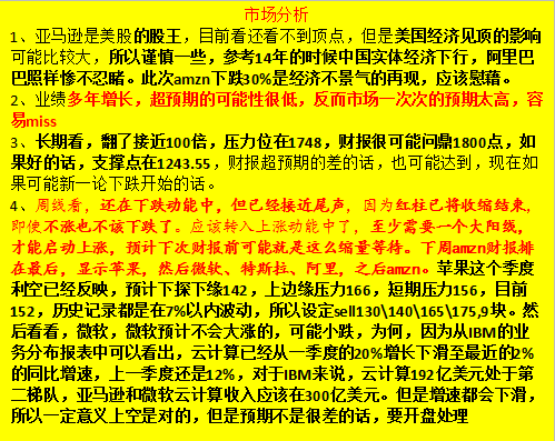 第一篇,财报季个主角分析,上期已经分析过奈飞了,本期将amzn、tsla、巴巴、、aapl进行分析。baidu、facebook、微软。