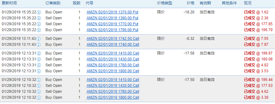 3、有些操作不能操之过急,需要等待时点,有时候我们需要在开仓的时候等待,有时候我们需要在关仓的时候等待,比如在amzn里边我们原本计划在月30号收盘的时候在建立财报策略,但是因为aapl、苹果、amzn正好隔着一天,担心前面的策略失效后影响后面的资金开仓,所以就在周二,把aapl、tsla、amzn的财报策略全部下好,aapl、tsla在可控范围呢,而amzn却在周三周五经历了超级大涨,从我建仓的点位在1600点,涨到财报前一天的1747点,已经经历了大约8%的涨幅,明显我是坐不住了,建仓有点早了,导致在财报前一天需要结束此前的仓位,重新建仓,也直接导致了最后盈利的1200美金全部与前期建仓的亏损抵平,白忙乎一次,跟上次amzn财报是一样,从盈利1200美金最后在盈利200美金的时候结束交易,说到底我还是对amnz 的股性不太熟悉,或者说市场的关乎点和看法没有get到。