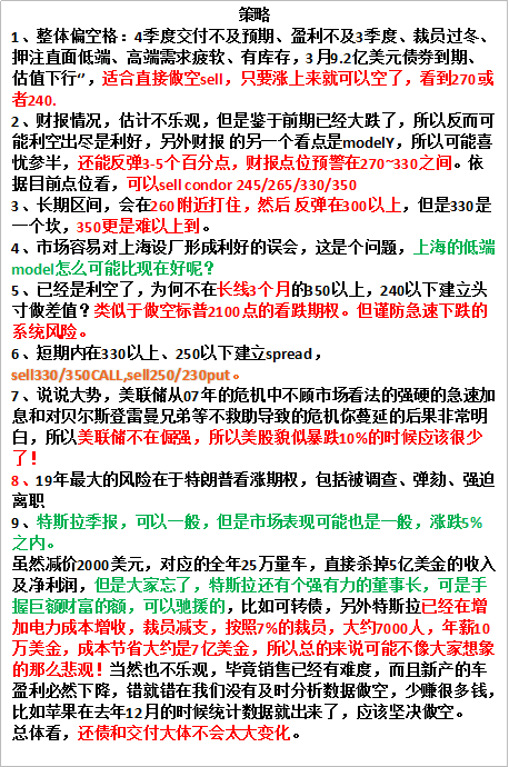 特斯的大趋势是下降的,但是短期内,各类担忧貌似都无声的化解了,所以特斯拉并没有大跌,反而小幅攀升主因对他的一季度指引亏损有些过头,对3月份的还债有些过分了。另外3月份是modelY 的发布时间,特斯拉的车型需要加速上线了,投资者等不起了。所以整个未来可能都是小幅攀升的,然后在跌下来。长期区间,260~350,短期区间290~320或者315.