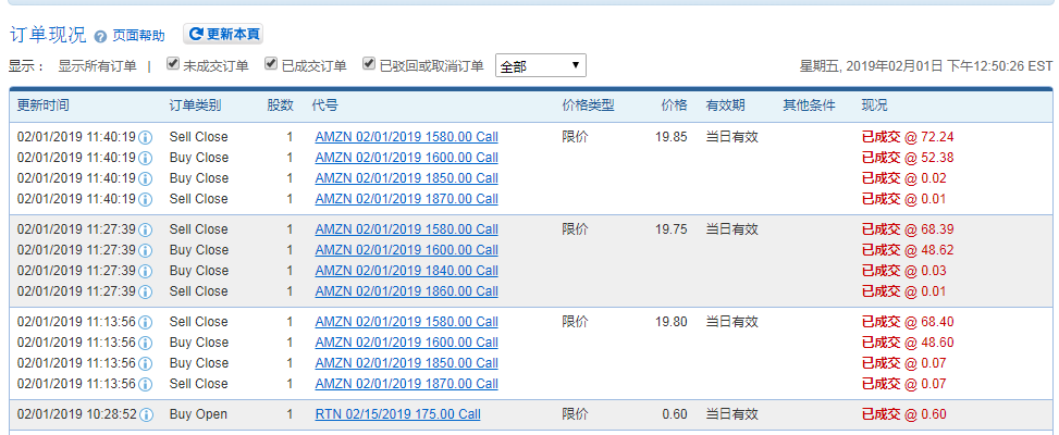 盈利400多,最后那个时间价值太高了,而且担心涨到165的话,我的盈利就更小了,可能只有300了。所以即使有大约300到400的时间价值也只能平掉了,因为毕竟这种强势的市场,身上力量很大的,叠加上AMZN大涨4%,这是暴涨的节奏,远走为宜,还是那句话,在市场里就可能等到亏损。
