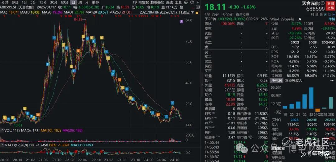 业绩的刹车、定增的流产以及分拆的叫停,都导致了天合光能市值的严重缩水。与股价最高点相比,目前天合光能股价暴跌近八成,市值大幅缩水1400多亿,这对其品牌形象和市场地位造成了不小的冲击,也会在一定程度上加剧其在资本市场的融资难度和成本压力。