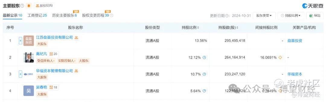 据天眼查APP显示,天合光能董事长兼总经理高纪凡直接持有12.12%的股份,并间接通过其控制的江苏盘基投资、清海投资和天合星元持股16.07%,合计持有28.19%的股份。值得一提的是,高纪凡配偶吴春艳单独持有天合光能5.64%股份。