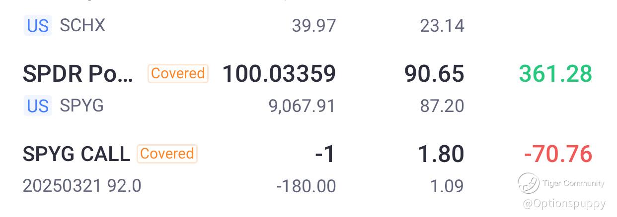 On the flip side, when the market is low, I strategically sell ITM calls slightly above the current price to allow for moderate upward movement. For instance, when SPYG dropped to $88, I sold a call option at $92. This gives me the opportunity to earn premium income while capturing some of the upside if the stock price rises toward the strike price.
