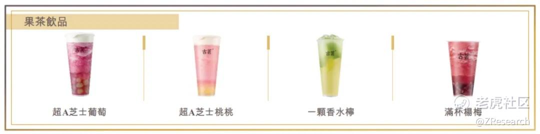 果茶饮品:果茶饮品由各种新鲜水果制成,其中包括许多短保质期水果,口味新鲜。截至2024年9月30日止九个月,果茶饮品录得的总销量为4.026亿杯,占售出总杯数的41%。下方图示展现了一些具有代表性的果茶饮品。