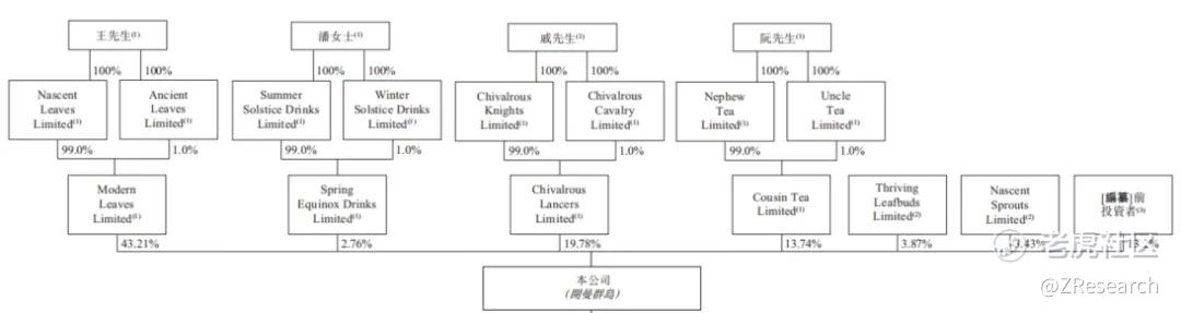 招股书显示,古茗在上市前的股东架构中,王云安先生通过家族信托 Modern Leaves Limited持股43.21%;