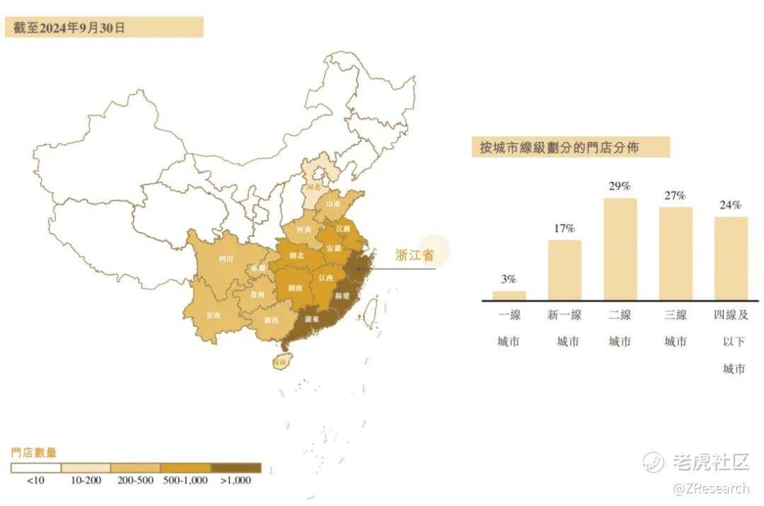 门店网络高质量扩张:截至2024年9月30日,古茗拥有广泛的门店网络,包括9,778家门店,覆盖中国全国17个省份,超过200个各线级城市,并已在8个省份建立了超过500家门店,其中在浙江拥有超过2,000家门店。